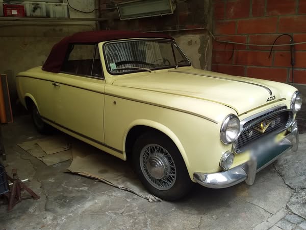 - Dans le cadre de la succession d’un collectionneur Peugeot et ancien salarié de Peugeot, mise en vente d’une Peugeot 403 cabriolet sortie de La Garenne en avril 1957. Excellent état, équipée de roues Robergel en 380 (4) et d’une rare calandre GH. Restauration intégrale récente carrosserie, mécanique et intérieur cuir. La voiture est authentifiée par l’attestation de date d’Automobiles Peugeot et également connue à l’inventaire du C403 cab. Historique connu.