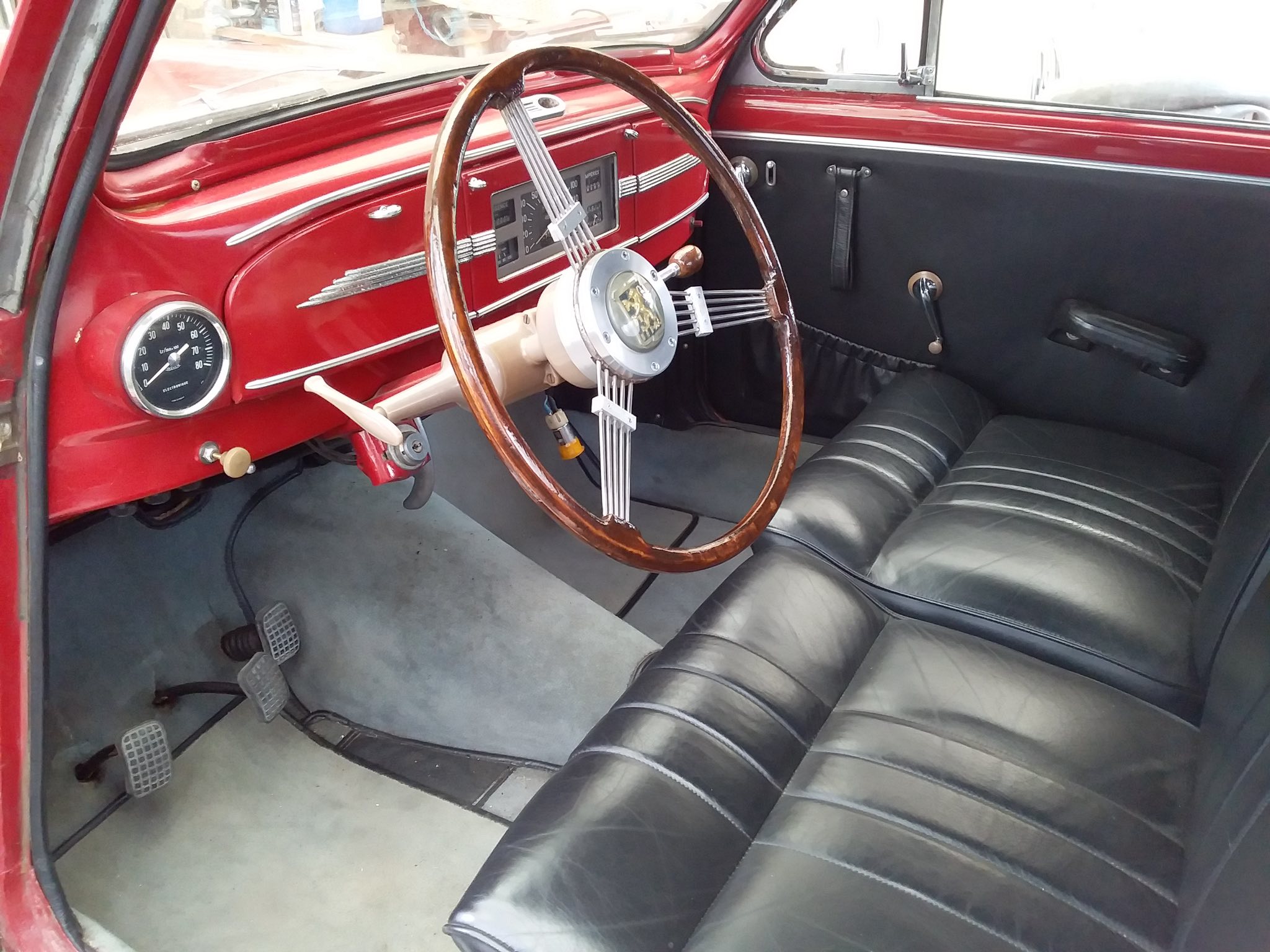 Voiture complète (sauf un phare), toit ouvrant, pare-chocs plats, volant 4 branches, petite lunette, compteur central, clignotants flèche.